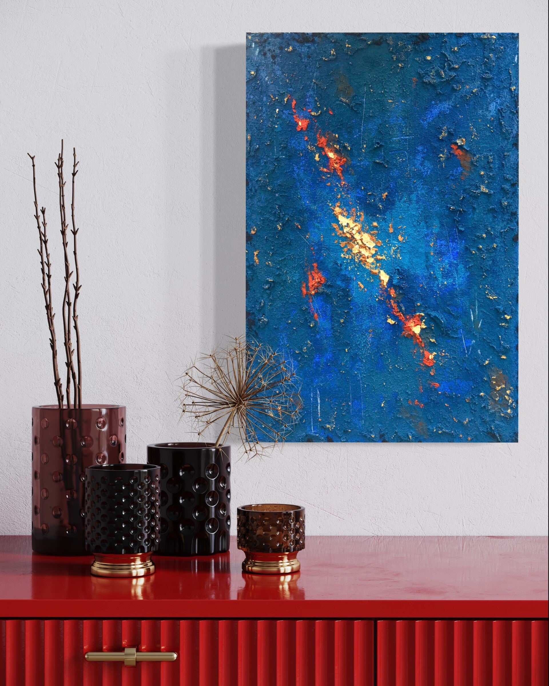 Tecnica mista acrilico e sabbia con fogli d'oro su tela 40x60 cm