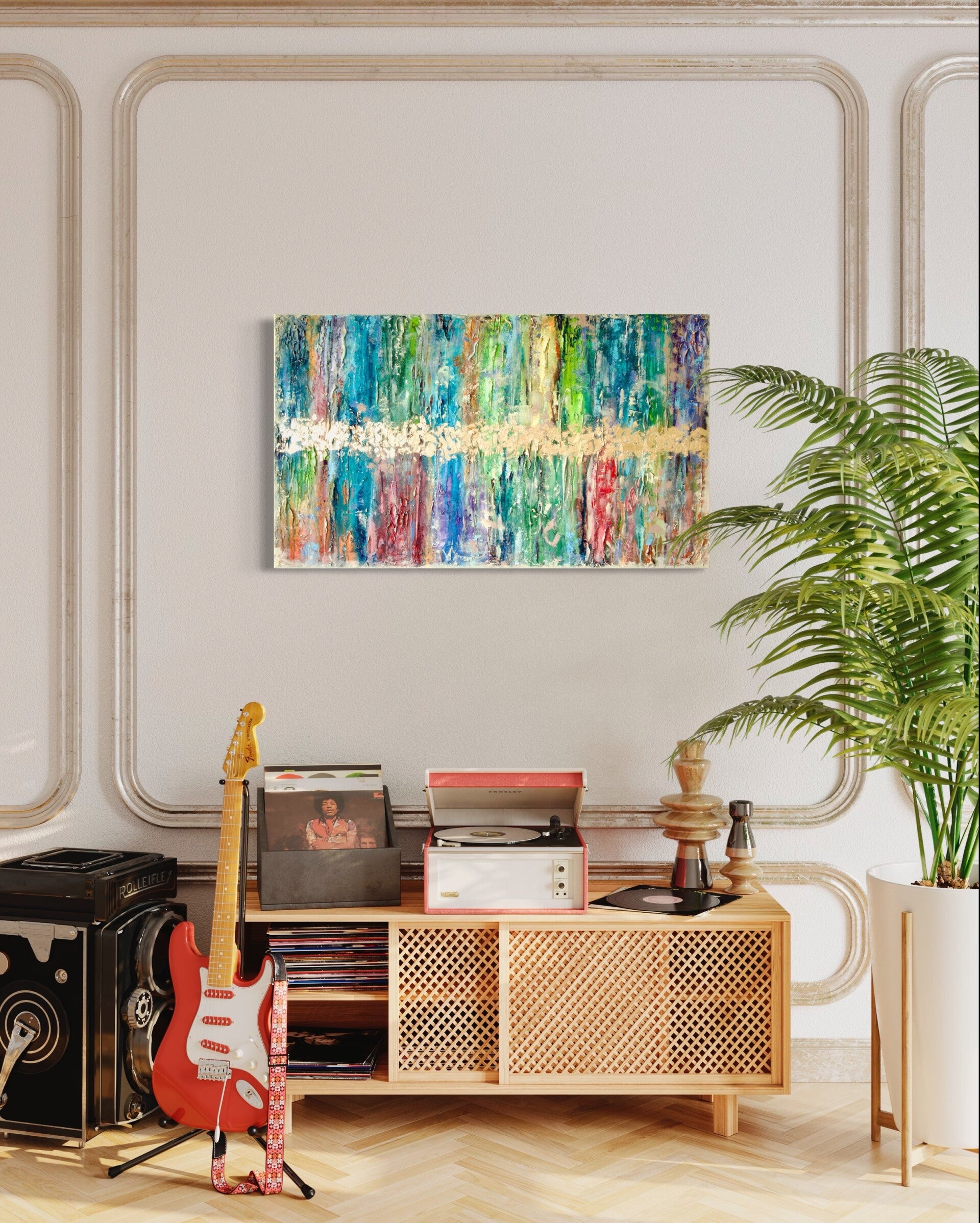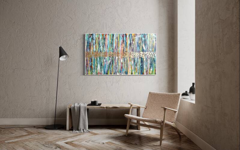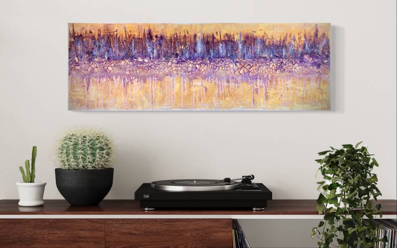 Tecnica acrilico con fogli d'oro su tela 40x100 cm con cornice bianca