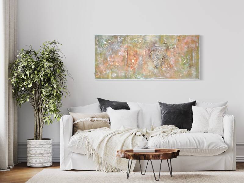 Tecnica mista acrilico con fogli oro rosa su tela 20x100 cm