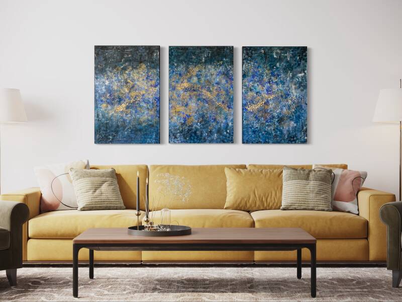 Tecnica acrilico e fogli d'oro su tre tele 60x90 cm