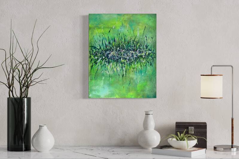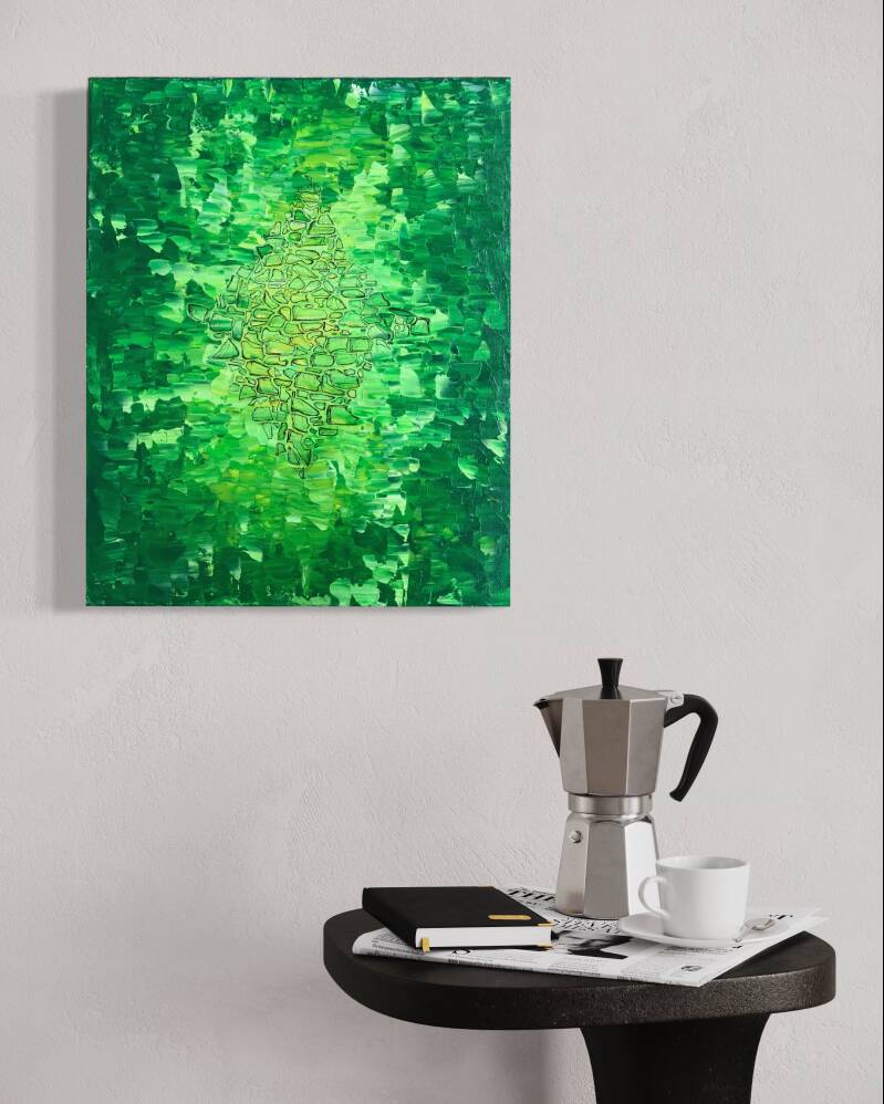 Tecnica mista acrilico su tela 50x70 cm con bordo giallo fosforescente