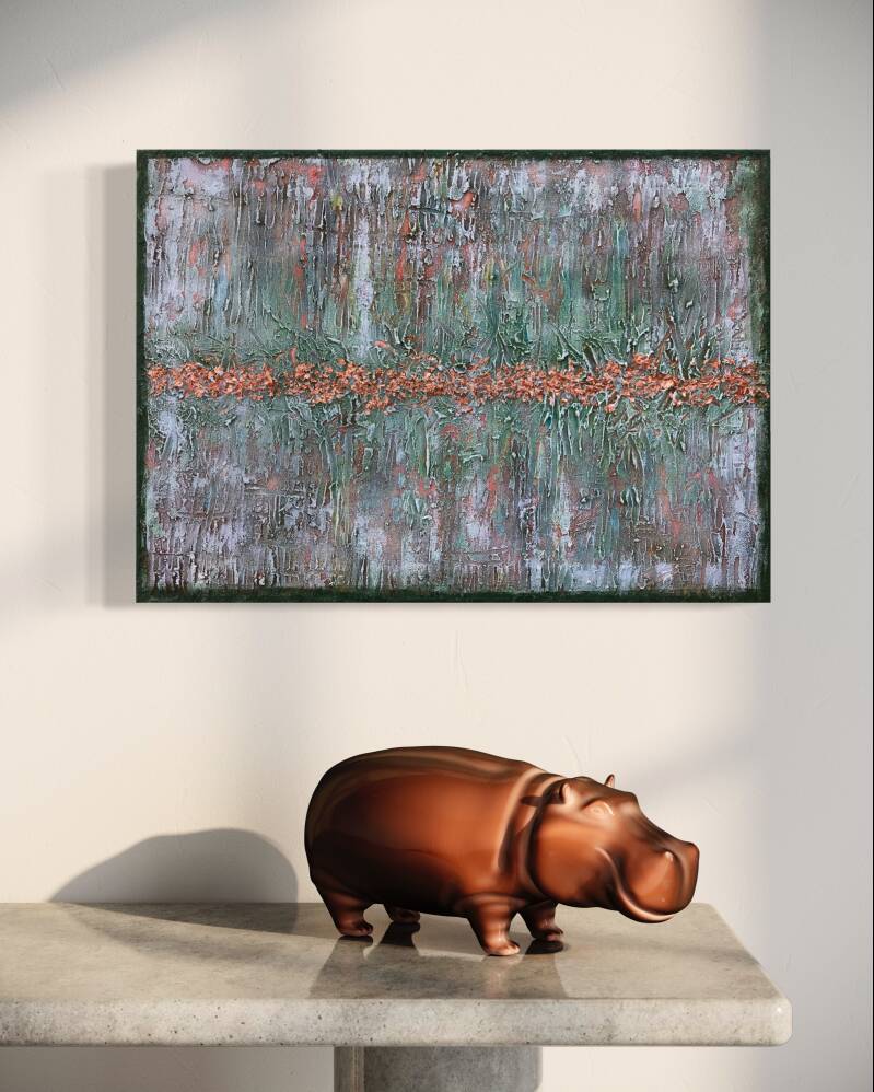 Tecnica mista acrilico con materiale riciclato su tela 50x120 cm